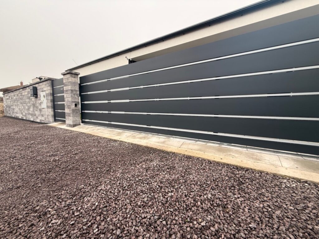Dnes sme úspešne dovzdali modernú automatickú hliníkovú posuvnú bránu s integrovanou personálnou bráničkou. Súčasťou objednávky bola kompletná dodávka posuvnej hliníkovej brány, spoľahlivého pohonu a samostatnej hliníkovej bráničky s elegantnou nerezovou kľučkou. Celý systém je navrhnutý tak, aby spojil vysokú odolnosť, dlhú životnosť a reprezentatívny vzhľad vášho pozemku.