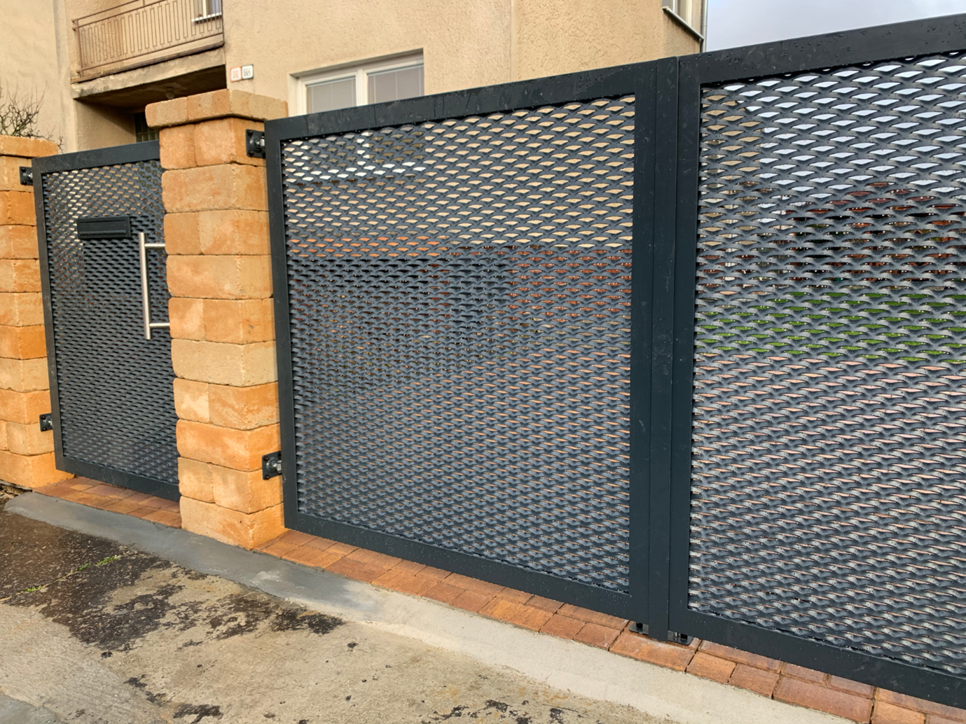 Moderná dvojkrídlová brána tentokrát v obci Bánov bola zhotovená z obľúbeného ťahokovu strednej velkosti oka. V podstate zákazka obsahovala dve dvojkrídlové brány a jednu bráničku. Výška oplotenia bola 160 cm. Stavebné otvori boli pomerne úzke ale vjazdu osobných vozidiel to stačilo. Bránička bola vyhotovená na manuálne otváranie bez elektrického zámku. Použité bolo moderné madlo zákazníkom zvolenej dĺžke 40 cm. Všetko na zákazke bolo opatrené pozinkom a následne práškovou vypaľovanou farbou. Takáto vezia povrchovej úpravy zabezpečuje absolútnu bezúdržbovosť a farebnú stálosť. Tentokrát bola bola zvolená antracitová matná farba bez štruktúrovaného povrchu. Na krídlach sú zvolené najčasťejšie používané nastavovacie pánty veľkosti 18mm. Ich použitie zabezpečuje nastavovanie krídiel pri prípadných výkyvoch murikov vplyvou počasia a prípadnách teplotných extrémnych výkyvov. Všetky krídla brán a bráničky sa otvárajú smerom von z dôvodu stúpajúceho pozemku smerom do dvora. Ani budúceme prípadnému montovaniu pohonov to neprekáže, nakoľko dokážeme pohony namontovať tak, aby boli vo dvore a zároveň sa otvárali smerom do ulice. Zákazník bol spokojný tak sme skokojní aj my. Želáme dlhoročné bezporuchové užívanie. Viac fotiek a bližšie informácia o prácach si môžete pozrieť na : https://www.facebook.com/pg/ Kované-brány-Nové-Zámky-JuhoKov-Čaplák-412300062490219/posts/?ref=page_internal