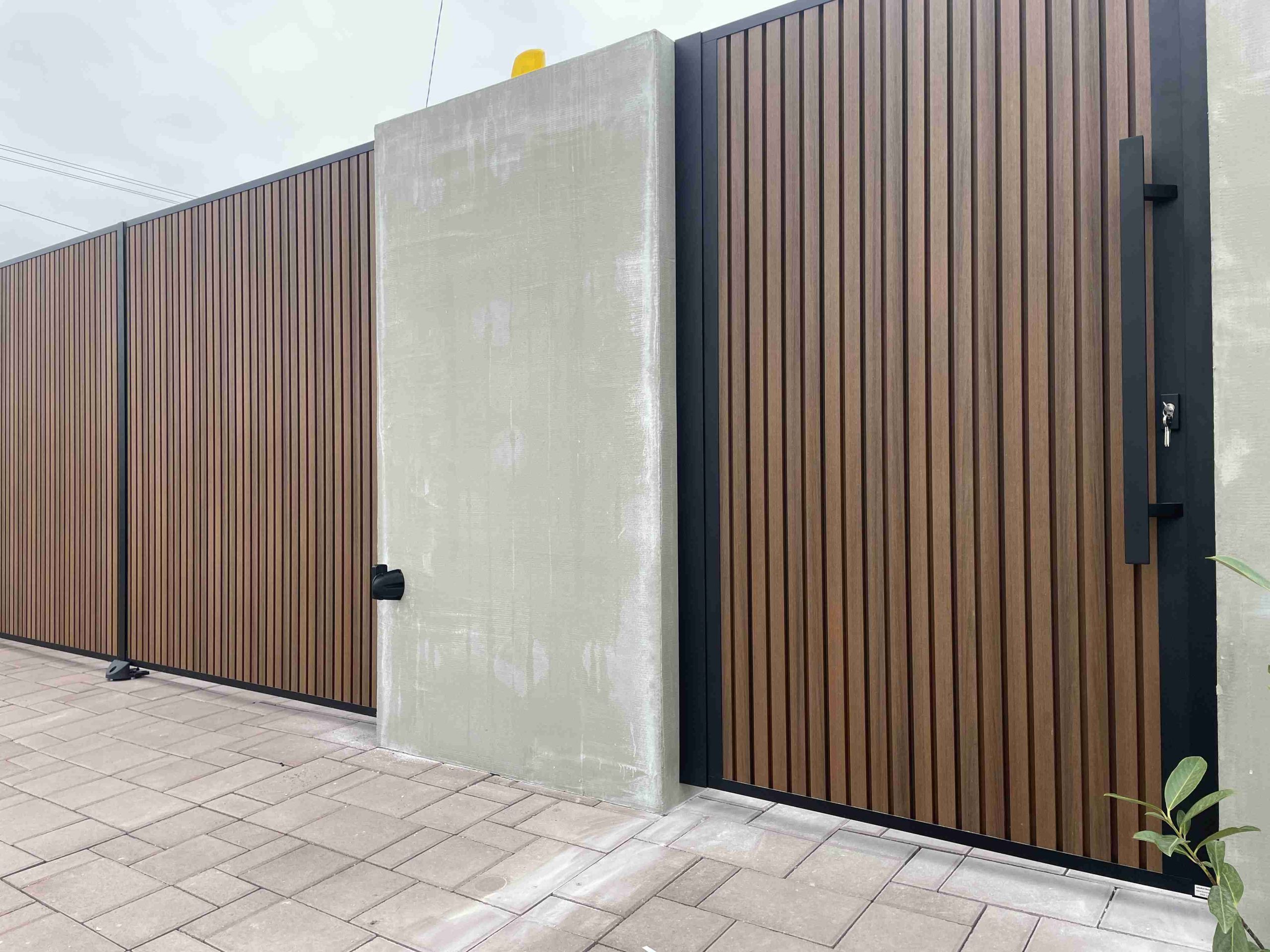 Drevoplastové brány predstavujú spojenie pevného hliníkového rámu a výplne z kvalitného WPC, ktoré ponúka prirodzený vzhľad dreva bez náročnej údržby.