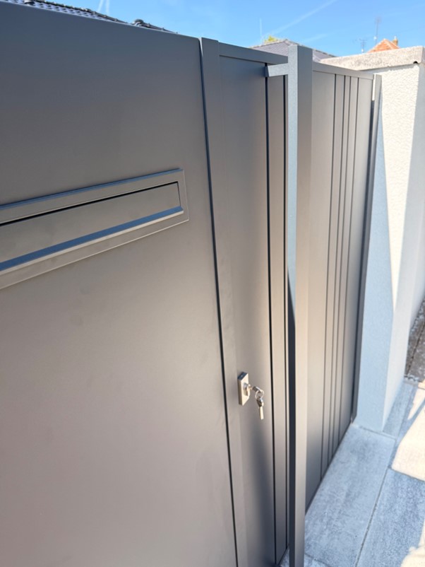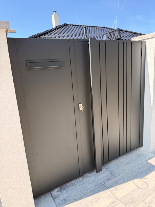 Pevný panel, ktorý sa dá v prípade potreby ľahko otvoriť, obsahuje komunikačný kábel prepojený s elektromagnetickým zámkom a zvončekom. Rovnako v hliníkovom otváracom paneli je zabudovaná moderná poštová schránka českej výroby pre jednoduché vyberanie pošty z dvora.