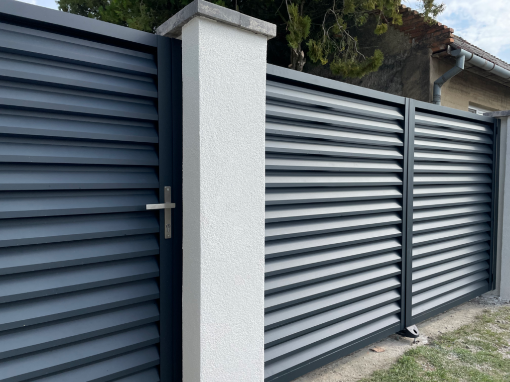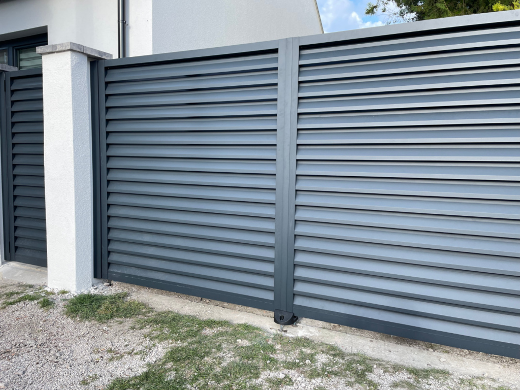 Podrobnosti, použité materiály a detaily k hliníkovej lamelovej bráne s bráničkou a plotovými vložkami v obci Palárikovo okres Nové Zámky nájdete v blogu na eshope: