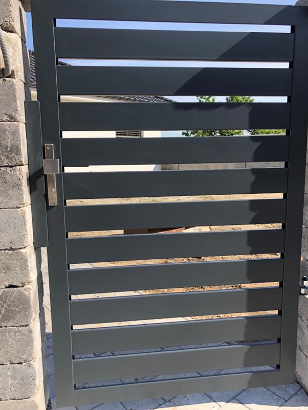 To znamená, že v podstate zákazník má cca 90 percent brány z hliníku. Bránička je otváraná elektrickým zámkom, čiže zvonka je moderná pevná kľučka (štvorec). Pánky sme realizovali klasické, nastaviteľné, čo znamená že brány sa dajú po celú dobu nastaviť podľa podľa potreby (zima, leto).