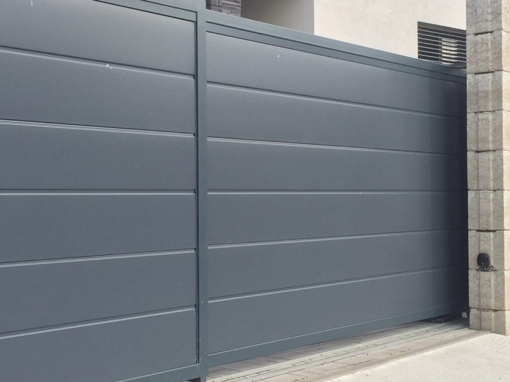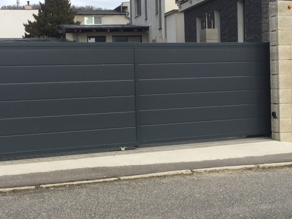 Posuvná brána v Pezinku bola vyrobená ako teleskopická, nakoľko miesto pri otvorení nedovoľovalo jej posúvanie do strany v plnom rozsahu. Od objednávateľa bola požiadavka konzistentnosti s garážovou bránou a teda je presne taká istá. Brána má rozmer 450 x 180 cm pričom je montovaný pohon značky NICE. Farba je zvolená veľmi obľúbená antracitová RAL 7016. Spodná medzera bola zachovaná na 7 cm a to kvôli teleskopickému systému brány a pohonu.
