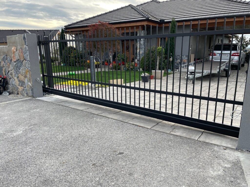 V obci Strekov okr. Nové Zámky sme realizovali zimnú montáž samonosnej pozinkovanej brány, jednej bráničky a 12 ks plotových vložiek. Vzor brány bol rovný, jednoduchý, kovaný a to presne podľa návrhu majiteľky. Terén na mieste realizácie bol z kopca, pričom bolo zložité všetko na konci zladiť, aby to vyzeralo dokonalo. Už samotné zameranie brán a plotových vložiek bolo preto náročnejšie ako bežne.